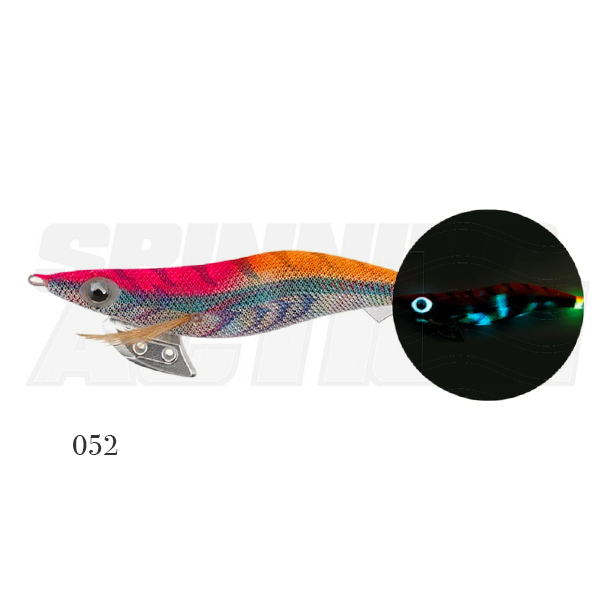 L’assetto in caduta e durante l’azione di pesca, sono stati migliorati notevolmente, grazie all’ aggiunta nella parte posteriore dell’artificiale di una piccola pinna, che ne mantiene l’assetto ottimale anche in condizioni dove la corrente tenderebbe a farla sbandare, inoltre questa serie di esche artificiali monta un’occhio maggiorato con colorazione a 490 NM che diventa Glow ( si illumina al buio ), un’arma micidiale durante le sessioni di pesca notturne.